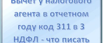 Вычет у налогового агента в отчетном году код 311 в 3 ндфл что писать