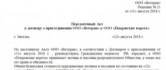 There are no restrictions on the form of the transfer deed (an example of a transfer deed can be found here). In terms of content, there is only one indication - the act must include “provisions on legal succession” (Article 59 of the Civil Code of the Russian Federation). This is information about the amount of receivables and payables and about the property that goes to the “main” company. It is permissible to reflect property either at market or at residual value (clause 7 of the Instructions for the formation of accounting records during reorganization).