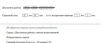 - В графах 8 и 9 проставляются отметки о территориальных и особых условиях труда, если таковые имеются.