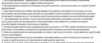 - порядок, сроки начисления и выдачи премий;